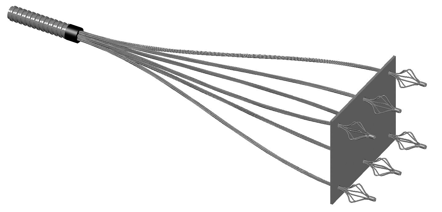 Основным преимуществом такого анкера является его низкая стоимость, так как вспомогательные элементы практически отсутствуют. На концах такого анкера устраивается распушение («фонарик») для более надежной фиксации канатов в бетоне. Распушение производится с помощью специального приспособления и занимает минимальное количество времени.
