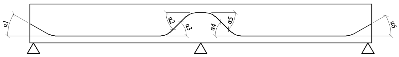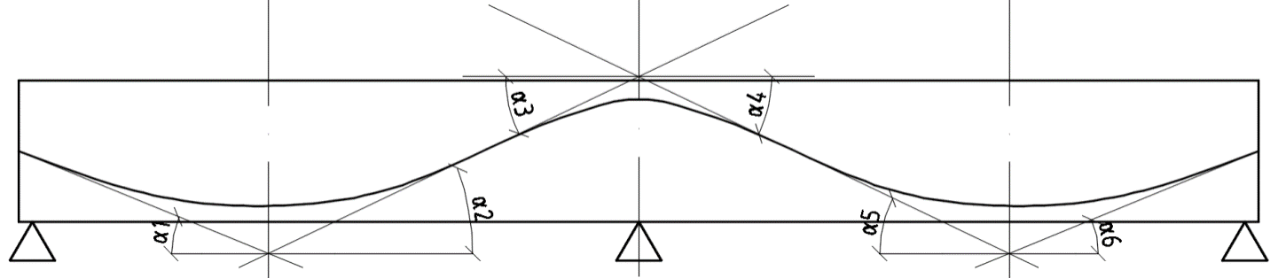 Форма раскладки напрягаемой канатной арматуры значительно влияет на потери предварительного напряжения от трения, следовательно, и на уровень установившегося усилия в напрягаемой арматуре, а также создает дополнительное воздействие на конструкцию на участке перегиба каната. Характеристикой для учета влияния формы раскладки канатной арматуры при расчетах является угол поворота оси арматуры по ее длине ϴ.