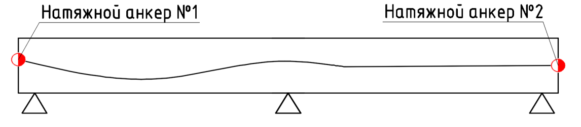 При большой длине и (или) сложной форме пучка потери на трение каната о каналообразователь или оболочку оказываются неприемлемо большими. Уменьшить их можно тремя способами: спрямить профиль пучка, уменьшить длину пучка, предусмотреть на обоих концах каната натяжные анкеры.