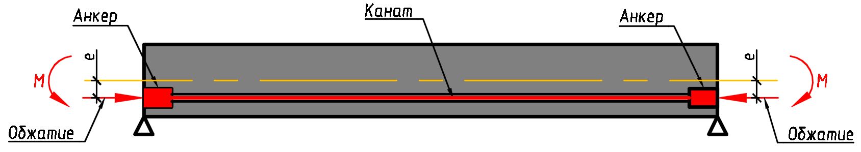 Обжатие - сжимающая нагрузка, которая передается от каната на анкеры. Создает в конструкции сжимающие напряжения, что способствует уменьшению раскрытия трещин.